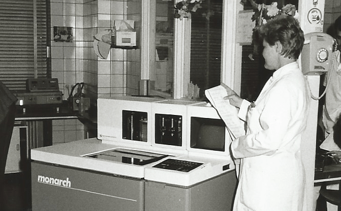 Hard aan het werk in het laboratorium, in 1988.